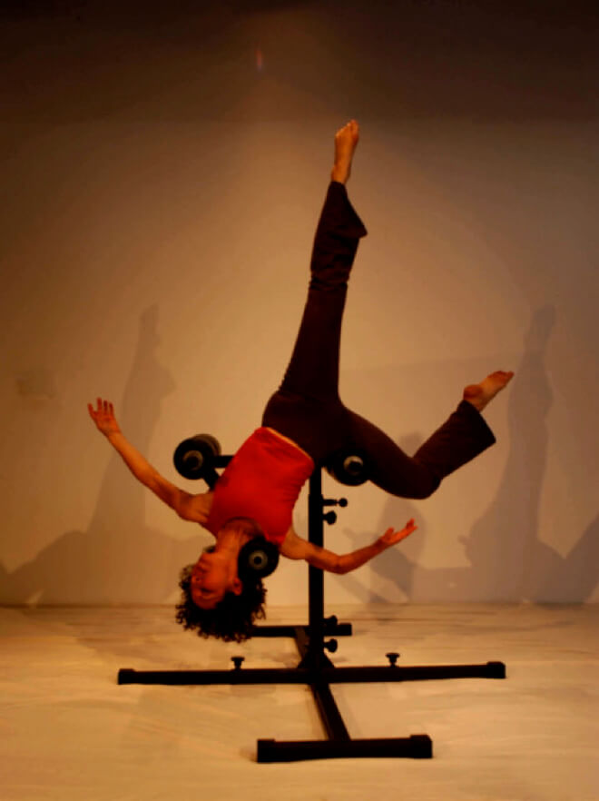 Durch eine reiche Vielfalt an Atem-, Klang- und multidimensionalen Bewegungserfahrungen in verschiedenen Beziehungen zur Schwerkraft, wie Stehen, Sitzen, Umkehrungen oder Hängen von Plattformen oder Stühlen, erfahren wir unsere Fähigkeit zu frei fließendem, uneingeschränktem Ausdruck. Wenn wir unseren Körper stärken, damit er sich fließend von einer Situation zur anderen in der Schwerkraft bewegen kann, steigern wir unsere Anpassungsfähigkeit und Widerstandsfähigkeit in allen Situationen. Anstatt wiederholt bestimmte Körperteile oder Muskeln zu modellieren und zu isolieren, konzentrieren wir uns auf die Stärke des gesamten Systems als Ganzes.